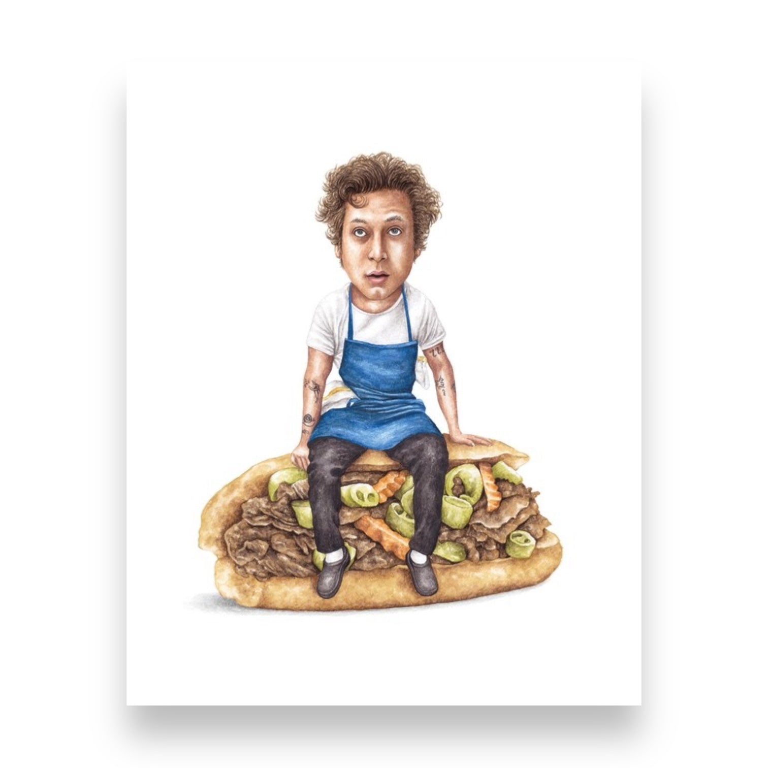 8"x10" watercolor print of Jeremy Allen White as Carmy from The Bear on an Italian beef.