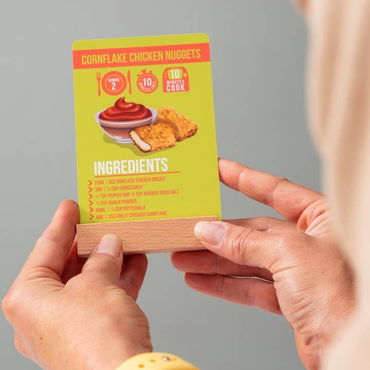 Throw away your recipe books and become the Jamie Oliver of air fryers with our awesome Easy Eats Air Fryer recipe cards! Containing over 50 easy and delicious recipes that can be prepped in 10 minutes and under, these fun recipe flash cards are full of quick recipes so you can become a ninja of air fryers and make meals in minutes! Rustle up meals all throughout the day, from breakfast to dinner, all in your air fryer oven! With 52 large format recipe cards and a quality wooden stand as a recipe keeper whilst cooking, these air fryer healthy and indulgent recipe cards make the perfect fun gift for friends and family, and will turn cooking stocking fillers to stomach fillers!
