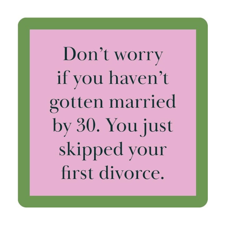 "Don't worry if you haven't gotten married by 30. You just skipped your first divorce."