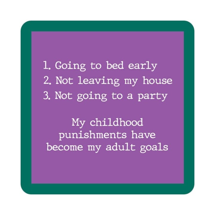 Coasters are 4”x 4” resin with cork backing and round corners.