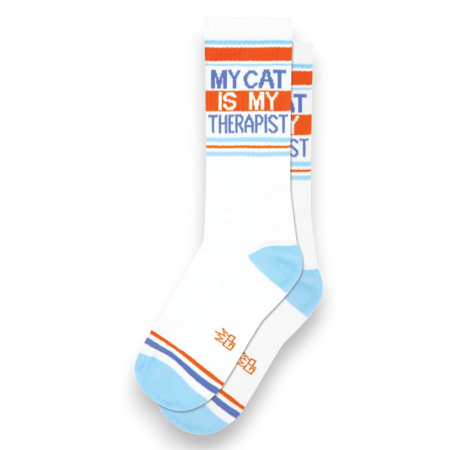 Get these comfy gym socks that celebrate the REAL therapists in your life... Cats! You can talk to them for hours (or 50 minutes, depending on how they bill your insurance) about anything and everything! Talk all you want and they'll make the same nonplussed face at you... and just when you're not sure if you're having a breakthrough or a breakdown... they'll saunter up, rub their heads into your hands and whisper... ever so softy... "we have to stop for today".