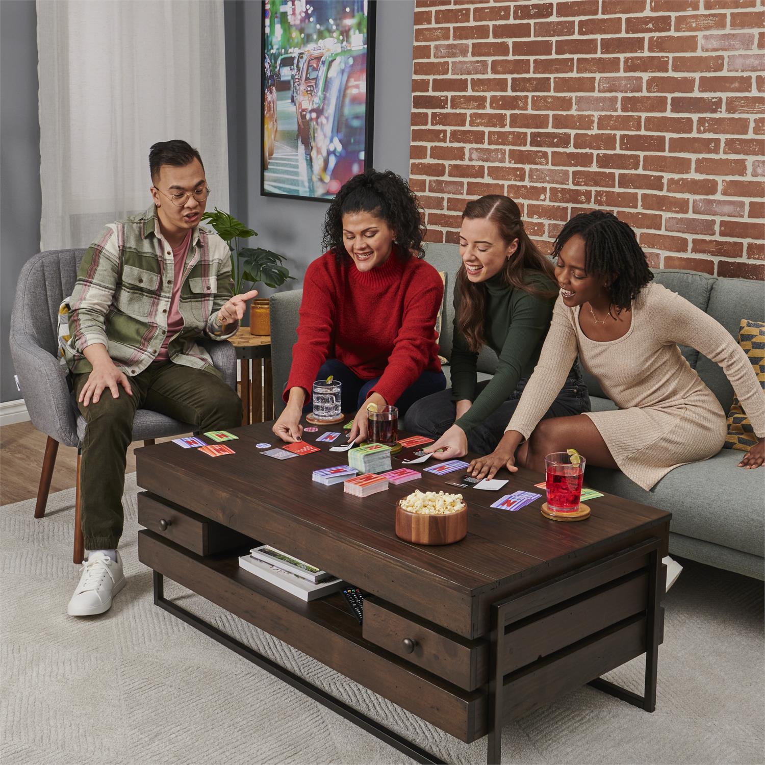 Obsessed with Nailed It, Sex Education, Emily in Paris, and more Netflix shows? Create the next Netflix Original hit show with the Netflix Trending Now Game! In this outrageous adult party game, every round starts with a unique Situation, announced by a Judge. Players try to create the best show to match the Situation by combining Netflix Original Content cards with hilarious Plot Twist cards and pitching to the Judge. Thought Stranger Things couldn't get any stranger? Think again! Watch out for the Drama Llama, who will add a Drama card to the round and might mess up your chances. If the Judge picks your show, you earn the Situation Card; earn five cards to be crowned Champion of the Remote and take charge of what you watch next on Netflix. For an outrageous evening of unforgettable fun on your next game night, add the Netflix Trending Now Game to the top of your list and hit play! For 3 to 10 adult players, ages 14 and up. Less