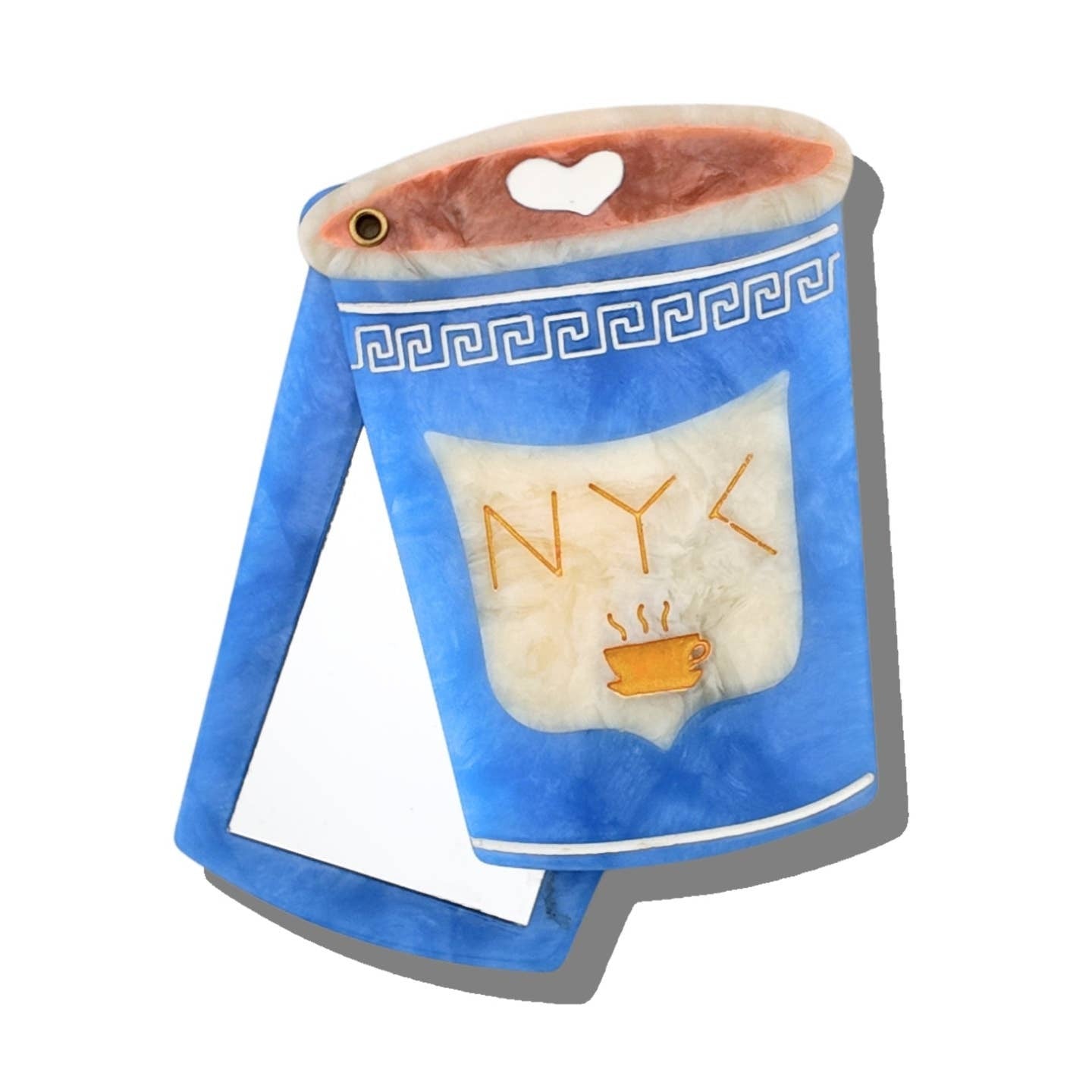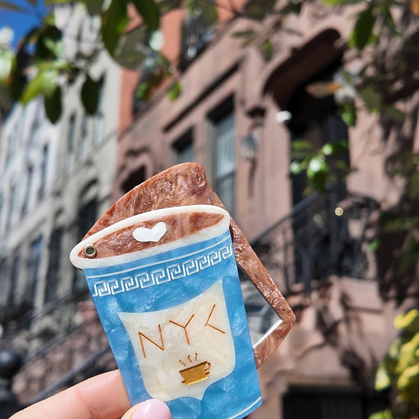 Each mirror features an original, hand-painted design to celebrate our hometown with the iconic NYC coffee cup—an everyday symbol turned charming keepsake. It’s a love letter to mornings in the city that never sleeps.