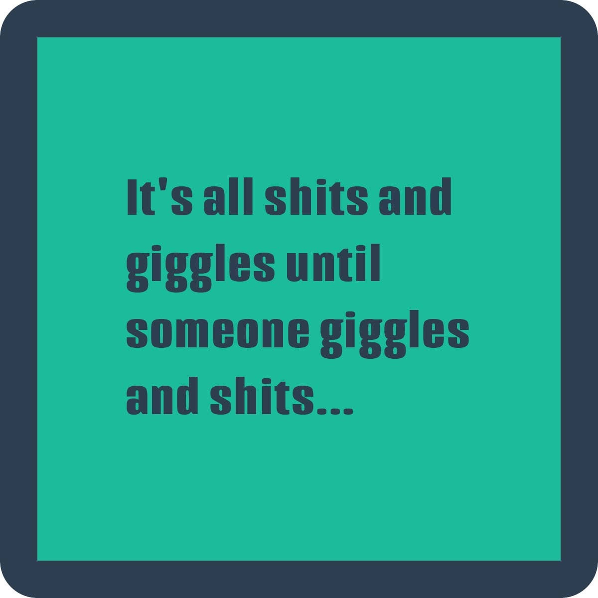 "It's all shits and giggles until someone giggles and shits" coaster