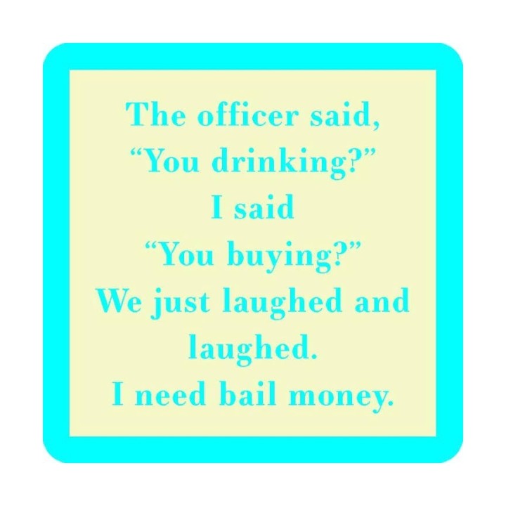 “The officer said ‘You drinking?’ I said ‘You buying?’ We just laughed and laughed. I need bail money.”