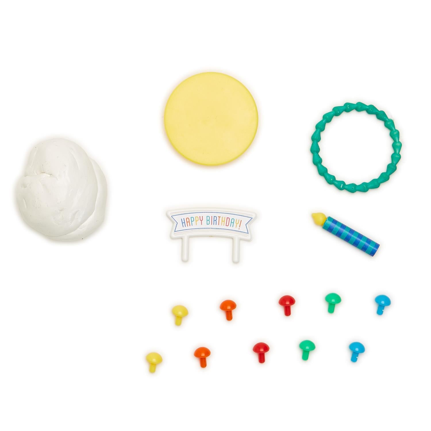 - Includes Happy Birthday banner, candle, 12 colorful sprinkle dots, frosting accent and pedestal.