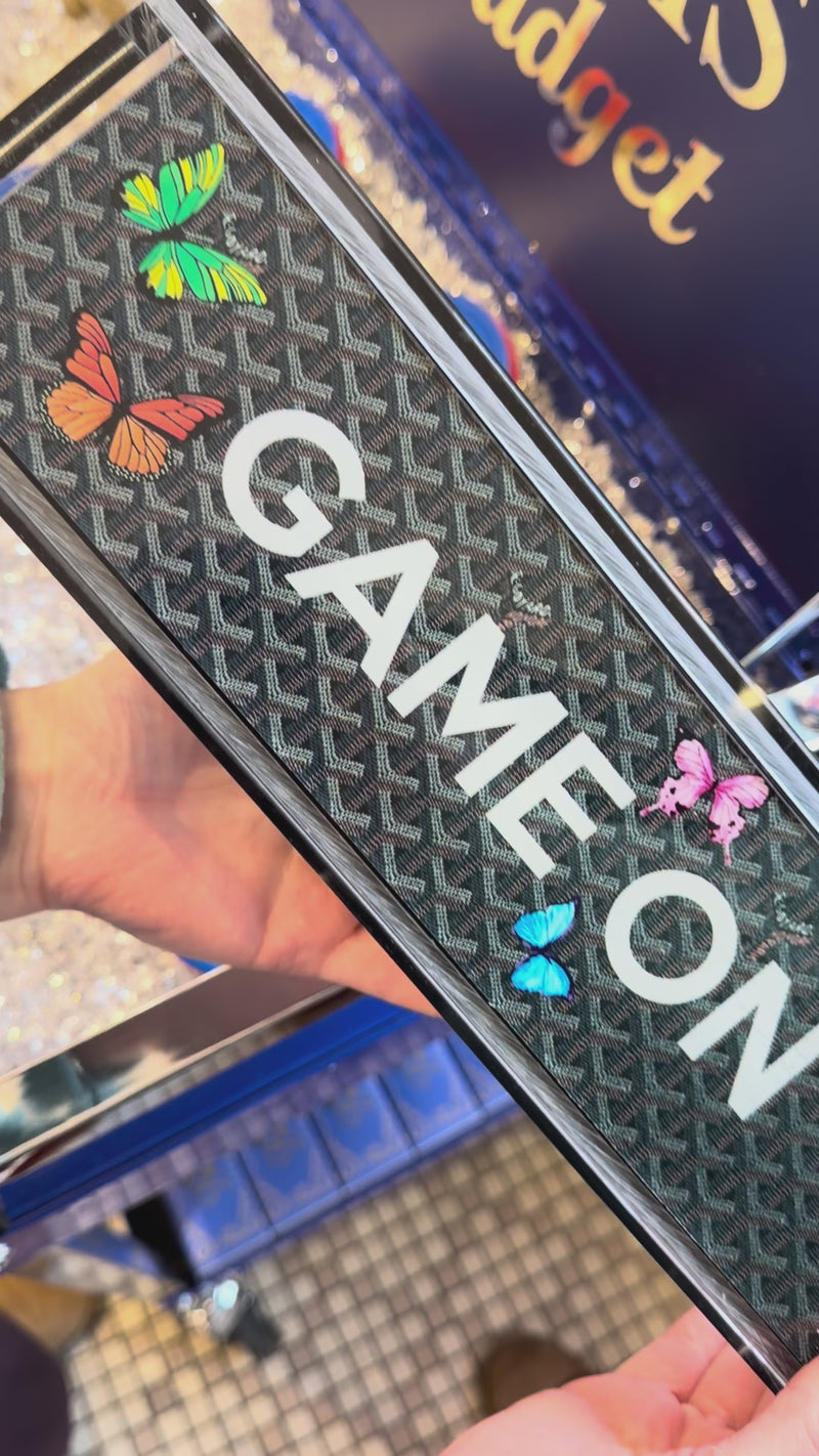• Available in multiple styles and colors: "GAME ON" Black w/butterflies, green w/butterflies, blue w/butterflies, orange w/butterflies, pink w/butterflies.