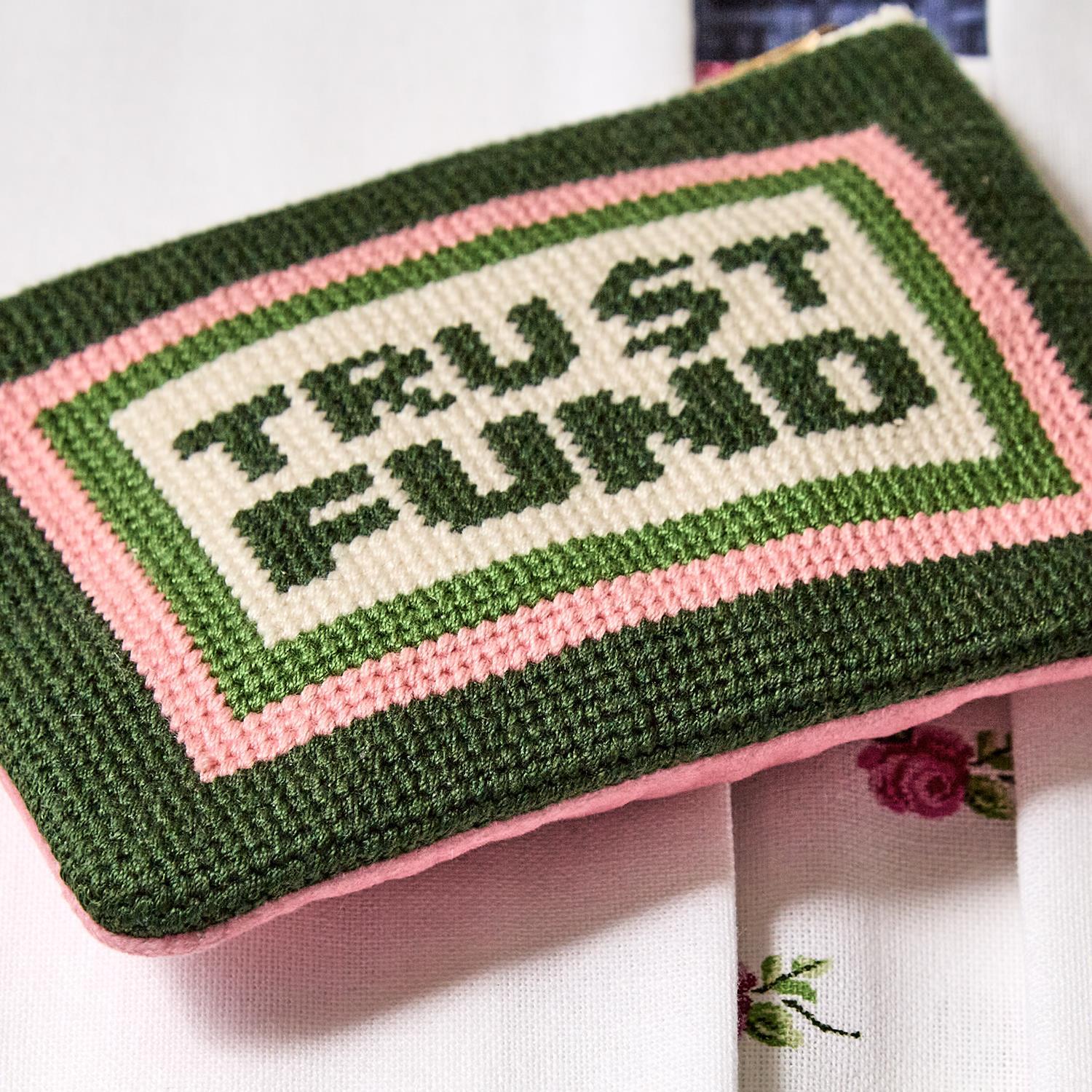 Cash in with the "Trust Fund" Needlepoint Coin / Gift Card Pouch. Designed by Boyer Gifts NYC, this exquisite pouch features a delicate bird charm zipper pull for added elegance. Perfect for storing coins or gift cards, this polyester pouch exudes luxury and style. Whether treating yourself or someone special, this pouch is a timeless accessory for any occasion.